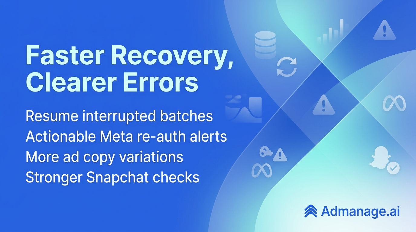 π Bulk Launcher gets smoother across creative setup, uploads, and launch checks.