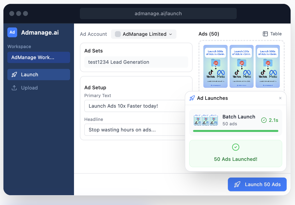 Admanage.ai is designed for fast execution. Campaigns can be duplicated, edited, and launched in bulk using Smart Duplicator workflows. hunch.ai supports bulk setup but follows a more structured, step-based process optimized for creative feeds rather than rapid testing.