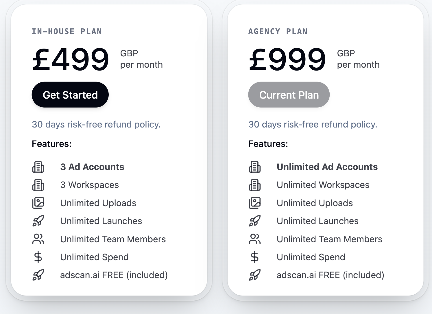 Admanage.ai offers flat pricing with unlimited spend, making costs predictable at scale. hunch.ai pricing increases with usage, features, and media spend, which can significantly raise costs for high-spend advertisers.